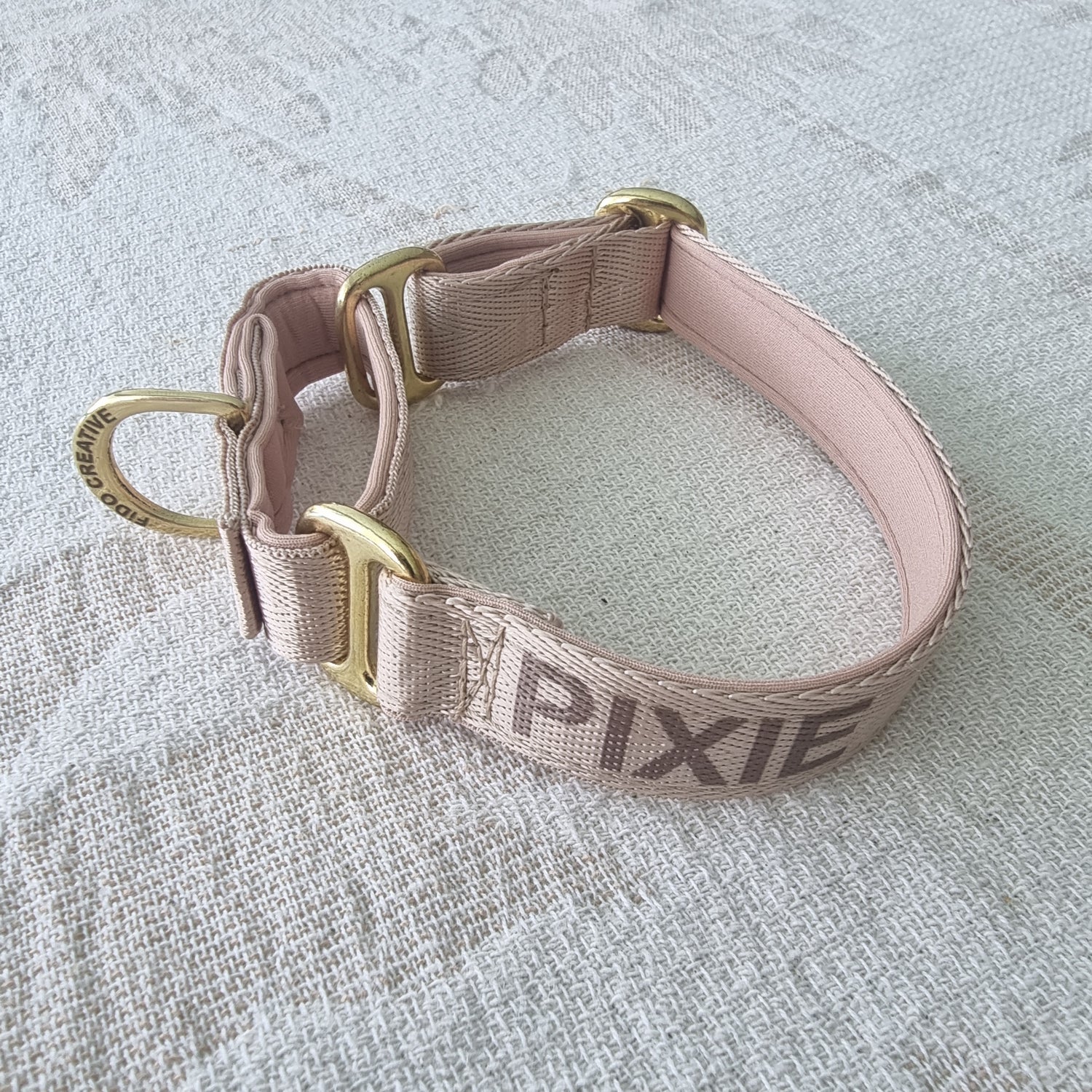 Beige Martingale Dog Collar – Padded, personalised with Dog’s Name Optional